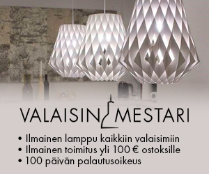 Verkkomyymälästämme löydät designvalaisimien klassikot ja uutuudet, monessa hintaluokassa. Ja mikä parasta - voit shoppailla milloin sinulle sopii parhaiten! Yli 100 euron tilauksissa on ilmainen toimitus.